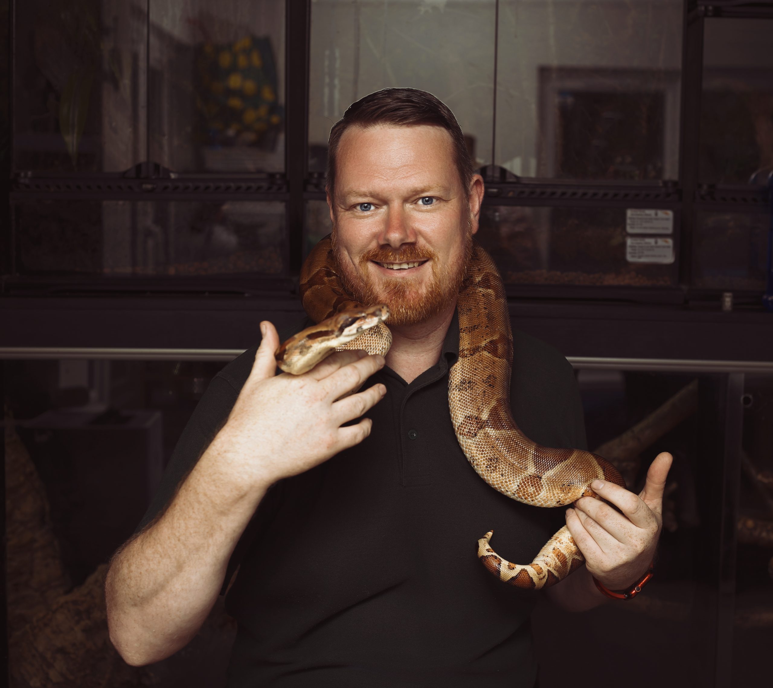 Although he’s always loved animals, it wasn’t until adulthood that Kevin held his first snake—an experience that sparked a deep fascination with reptiles. Since then, animals have become a central part of family life, and Kevin has played a huge role in caring for them and supporting Jo in growing Animal Cwtch.
